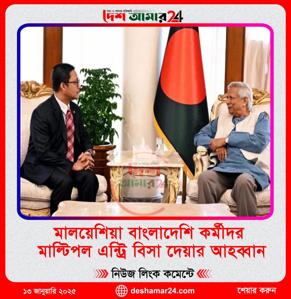 মালয়েশিয়ায় থাকা বাংলাদেশি কর্মীদের জন্য মাল্টিপল এন্ট্রি ভিসা ইস্যু করার আহ্বান জানিয়েছেন প্রধান উপদেষ্টা ড. মোহাম্মদ ইউনুস। সোমবার (১৩ জানুয়ারি) রাষ্ট্রীয় অতিথি ভবন যমুনায় বাংলাদেশে নিযুক্ত মালয়েশিয়ার হাইকমিশনার মোহাম্মদ শুহাদা ওথমানের সঙ্গে সাক্ষাতে প্রধান উপদেষ্টা ভিসার বিষয়টি আলোচনা করেন।