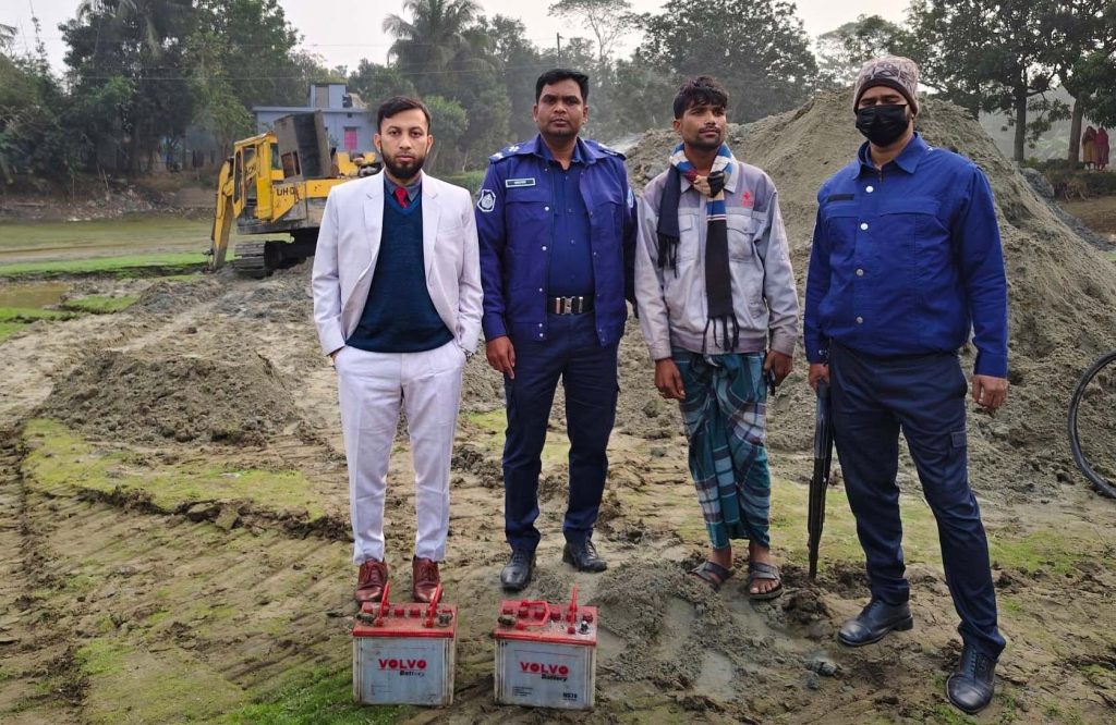 কুমিল্লার মুরাদনগরে এক্সক্যাভেটর ও ড্রেজার মেশিন দিয়ে অবৈধভাবে মাটি উত্তোলনের দায়ে দেড় লাখ টাকা জরিমানা করেছে ভ্রাম্যমাণ আদালত। উপজেলা নির্বাহী অফিসার মোঃ আব্দুর রহমান এর নির্দেশনায় বুধবার বিকাল থেকে সন্ধ্যা পর্যন্ত উপজেলার বিভিন্ন এলাকায় অভিযান চালিয়ে এ জরিমানা করেন উপজেলা সহকারী কমিশনার (ভূমি) সাকিব হাসান খাঁন। অভিযানে মুরাদনগর সদর ইউনিয়নের কাজী নোমান আহমেদ ডিগ্রি কলেজ এলাকা থেকে ১টি এক্সক্যাভেটর অপসারণসহ মাটি কাটার অপরাধে বালুমহাল ও মাটি ব্যবস্থাপনা আইনে বাপ্পি নামের এক ব্যাক্তিকে ৫০ হাজার টাকা জরিমানা অনাদায়ে ৬ মাসের কারাদন্ড প্রদান করা সহ ২ টি ব্যাটারি জব্দ করা হয়েছে। পাশাপাশি একই ইউনিয়নের ইউসুফনগর এলাকা হতে ৪ টি ড্রেজার ও প্রায় ২হাজার ৫শত ফুট পাইপ অপসারণসহ অবৈধ ড্রেজিং এর অপরাধে বিল্লাল নামের এক ব্যাক্তিকে ১ লক্ষ টাকা জরিমানা অনাদায়ে ৬ মাসের কারাদন্ড প্রদান করা হয়েছে। অপরদিকে ধামঘর ইউনিয়নের পরমতলা এলাকা হতে ১ টি এক্সক্যাভেটর অপসারণ করে সংশ্লিষ্ট সকলকে সতর্ক করেছেন সহকারী কমিশনার (ভূমি) সাকিব হাসান খাঁন।