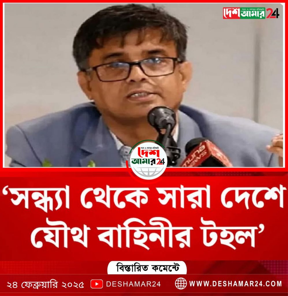 আজ সন্ধ্যা থেকে ঢাকাসহ সারা দেশের গুরুত্বপূর্ণ স্থানে যৌথবাহিনীর কম্বাইন্ড টহল চলবে বলে জানিয়েছেন প্রধান উপদেষ্টার প্রেস সচিব শফিকুল আলম।