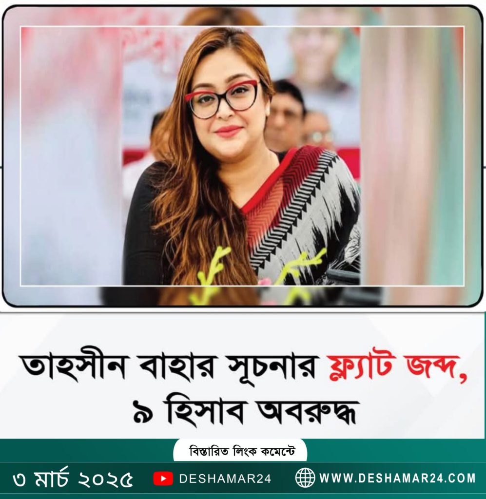 তাহসীন বাহার সূচনার ফ্ল্যাট জব্দ, ৯ হিসাব অবরুদ্ধ