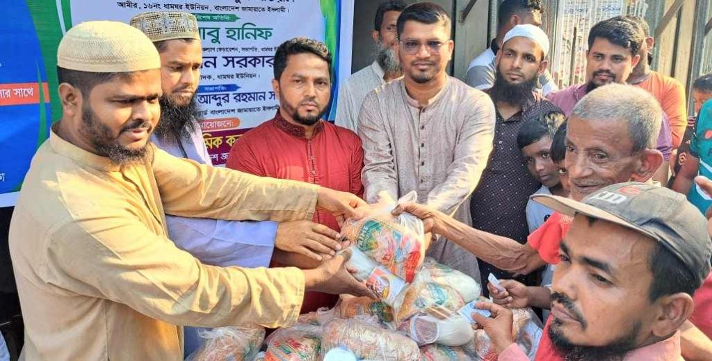 জামায়াতে ইসলামীর ওয়ার্ড সভাপতি মাও. মোঃ আব্দুর রহমান সরকারের সভাপতিত্বে খাদ্য সামগ্রী বিতরণ অনুষ্ঠানে প্রধান অতিথি হিসেবে উপস্থিত ছিলেন ধামঘর ইউনিয়নের সম্ভাব্য চেয়ারম্যান পদপ্রার্থী মোঃ নজরুল ইসলাম।