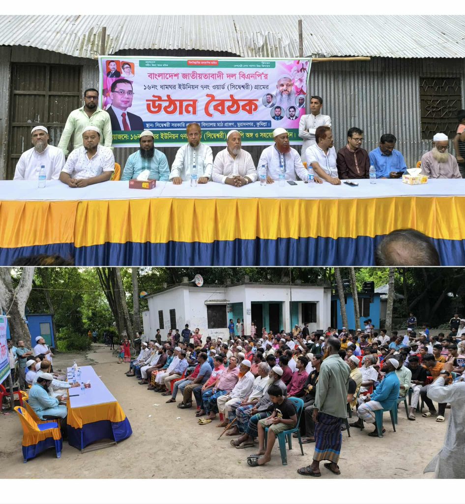 কুমিল্লার মুরাদনগর উপজেলার ধামঘর ইউনিয়নের সিদ্ধেশ্বরী গ্রামে বিএনপি ও অঙ্গ-সহযোগী সংগঠনসমূহের উদ্যোগে একটি উঠান বৈঠক অনুষ্ঠিত হয়েছে।